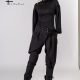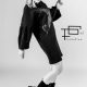 Manecile sunt supradimensionate prin pliuri si volum in zona umerilor. Din decolteul gatului coboara simetric doua volane care evidentiaza prin pozitia lor manecile dar si zona bustului.