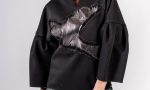 Manecile sunt supradimensionate prin pliuri si volum in zona umerilor. Din decolteul gatului coboara simetric doua volane care evidentiaza prin pozitia lor manecile dar si zona bustului.