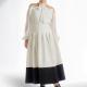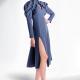 Manecile sunt supradimensionate prin pliuri si volum in zona umerilor. Din decolteul gatului coboara simetric doua volane care evidentiaza prin pozitia lor manecile dar si zona bustului.