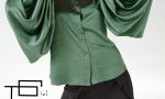 Camasa se evidentiaza prin croiul amplu al manecilor incretite in zona umerilor si ale mansetelor.