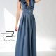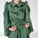 Manecile sunt supradimensionate prin pliuri si volum in zona umerilor. Din decolteul gatului coboara simetric doua volane care evidentiaza prin pozitia lor manecile dar si zona bustului.
