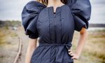 Jacheta cu maneci supradimensionate scurte in stil avangardist. Umareste linia corpului si accentueaza zona taliei prin jocul de linii.