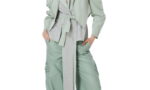 Jacheta se remarca prin croiul sculptural si multiplele modalitati de prindere.