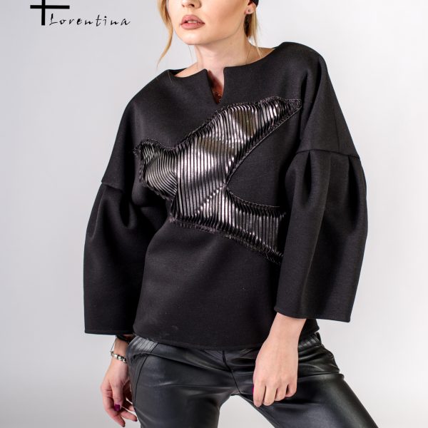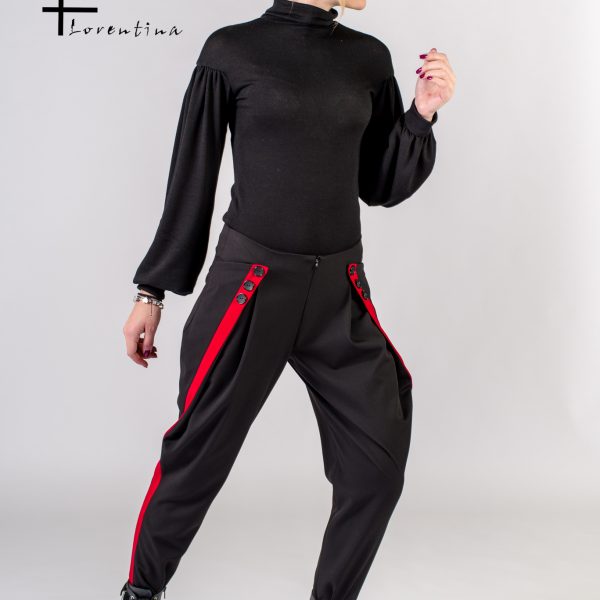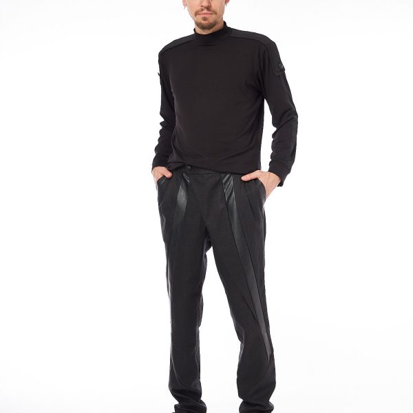 Din zona buzunarului lateral pornesc doua lame decorative din piele ecologica care se prelungesc aproape de zona genunchiului.