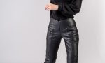 Pantalonii au cusaturi decorative care pornesc din zona buzunarelor si coboara pe centrul fetei pana la genunchi. Pantalonii sunt realizați din piele ecologica elastica. Partea interioara a materialului este căptușita .