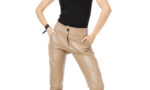 Pantalonii au cusaturi decorative care pornesc din zona buzunarelor si coboara pe centrul fetei pana la genunchi. Pantalonii sunt realizați din piele ecologica elastica. Partea interioara a materialului este căptușita .