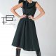 Rochie cu maneci supradimensionate in stil avangardist. Umareste linia corpului si accentueaza zona taliei prin jocul de linii. Se inchide cu fermoar ascuns pe mijlocul spatelui.