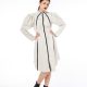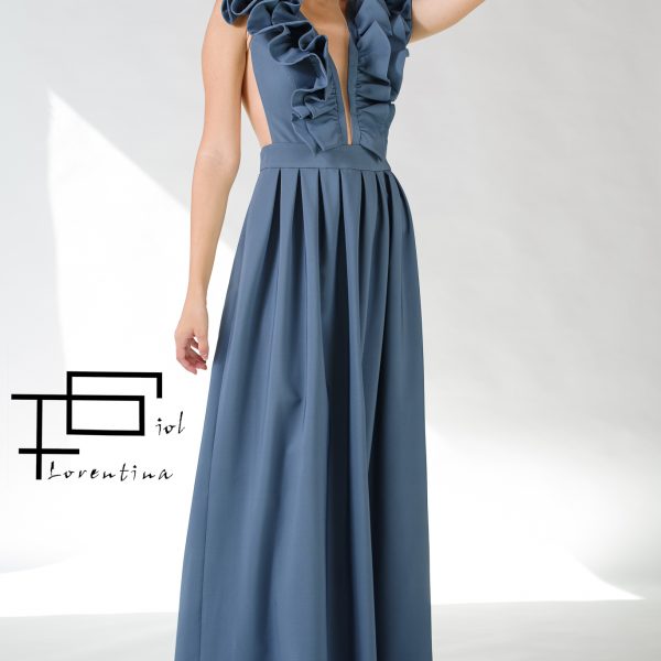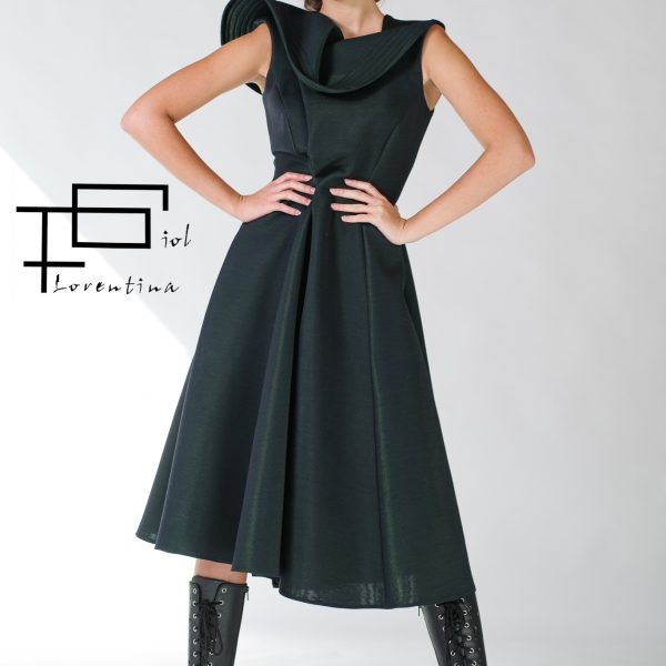 Rochia are umeri supradimensionati evidentiati prin cei doi epoleti .delimitati de pliurile care coboara pe maneca. Cele doua linii decorative care coboara din zona gatului spre talie incadreaza epoletii decorativi si creeaza o forma care evidentiaza si subtiaza talia.