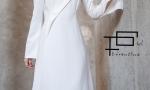 Acest model prezinta guler tip tunica, maneci lungi, despicate pe interior si slit lateral. Se incheie la spate cu un fermoar ascuns.