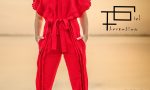 Manecile sunt supradimensionate prin pliuri si volum in zona umerilor. Din decolteul gatului coboara simetric doua volane care evidentiaza prin pozitia lor manecile dar si zona bustului.